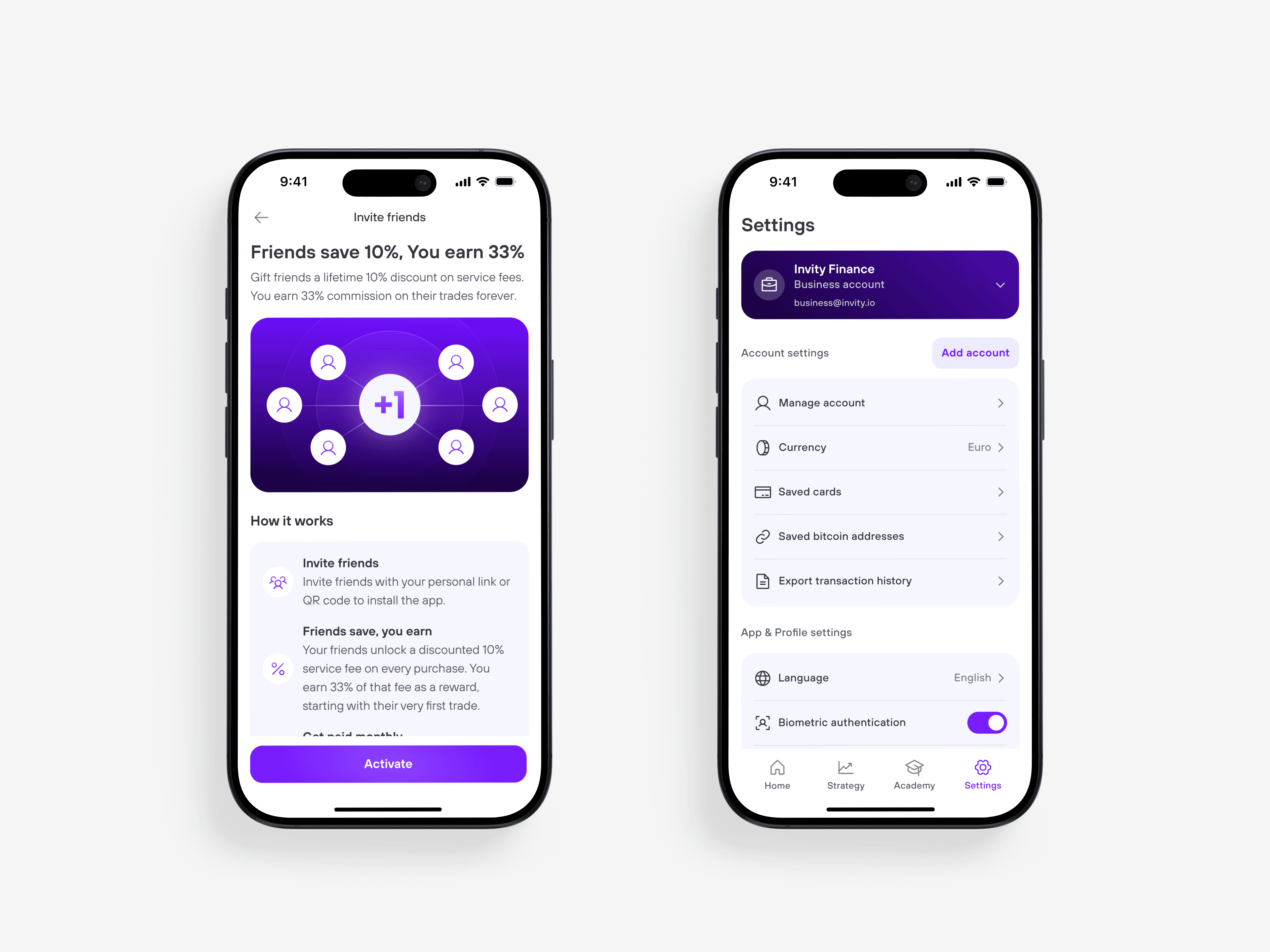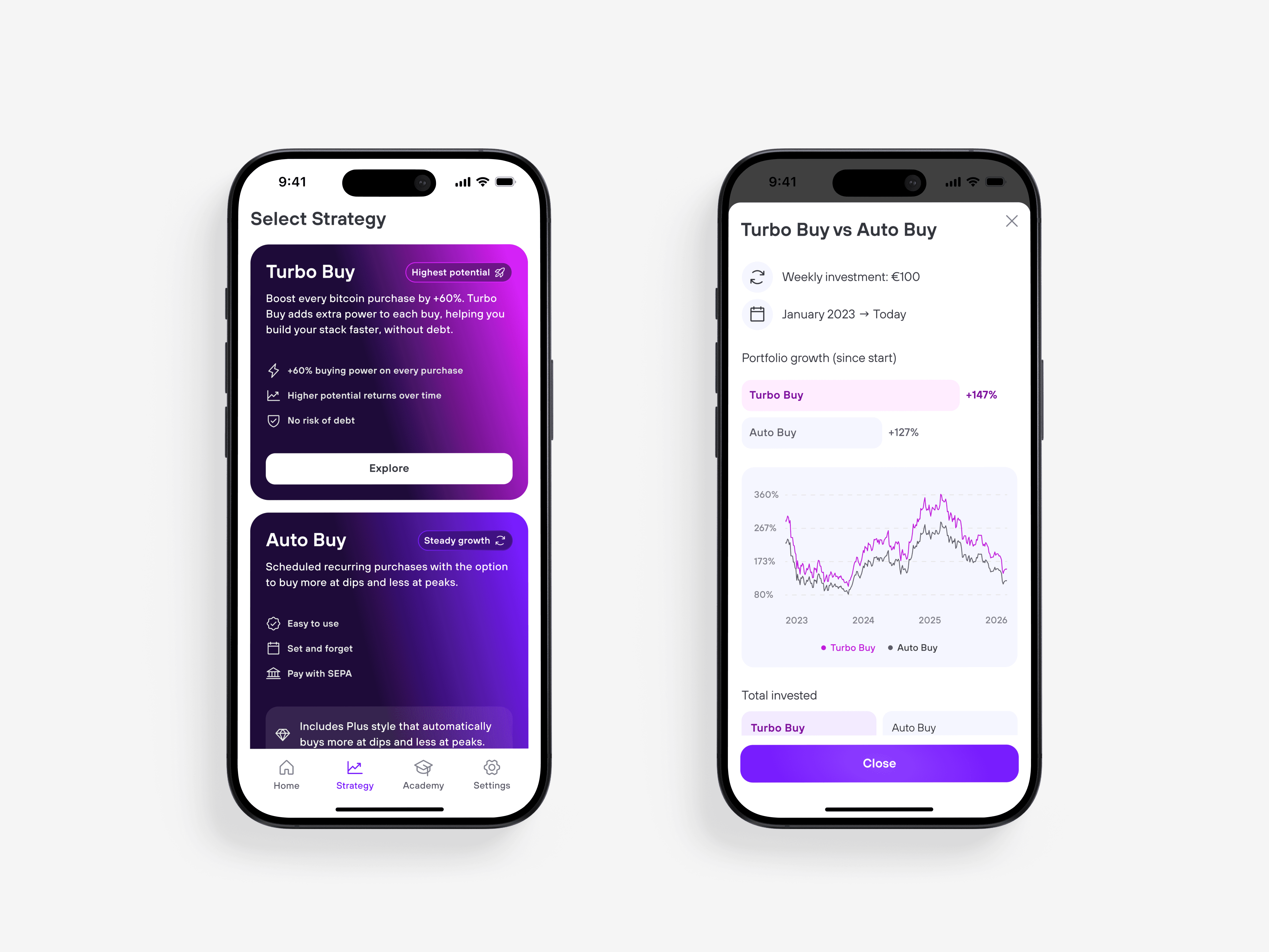 All-in-one Bitcoin app: From smart investment strategies to business accounts.
